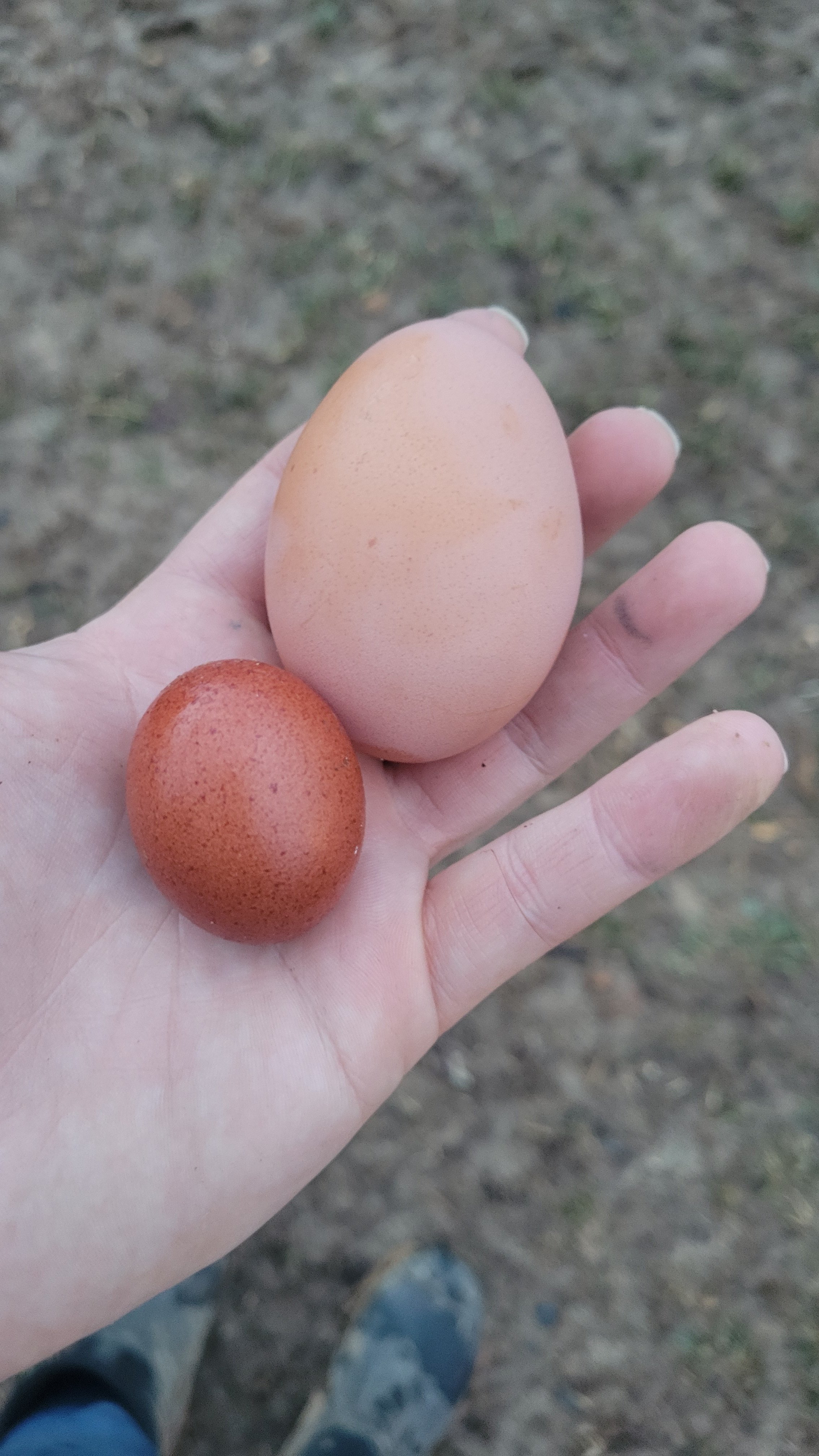 —I use saved bacon grease. Melt it in a skillet, hot then low. Crack 2 eggs (4 if also feeding the dog). Sprinkle salt, pepper, garlic, smoked paprika, oregano while side 1 is frying.