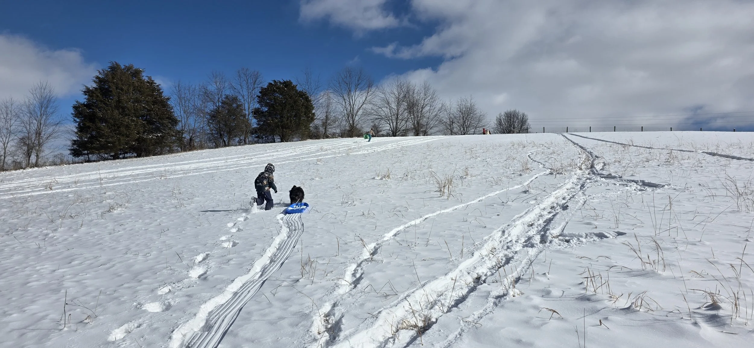 What a cold snow this was. During the annual It Finally Snowed So Let’s Sled meet-up at the farm, we remarked on how different the experience felt this year, a full 20 or more degrees cooler than years past. The temperature certainly determines sledding stamina.